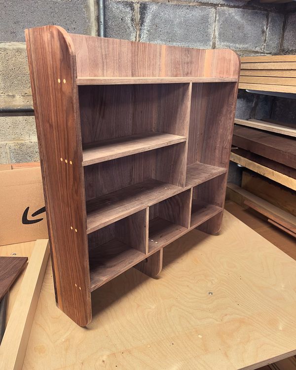 Este especiero de nogal es más que un mueble: es un homenaje vivo. Hace casi cuarenta años, mi tío construyó el original para el cumpleaños de mi madre. Estuvo en cada cocina que he llamado hogar, una presencia constante en el telón de fondo de la vida familiar. En una fotografía antigua puede verse posado entre mi madre y mi tía, sencillo y elegante, ya querido. Tras su fallecimiento —mi madre, mi tío y mi tía, todos en un mismo año— sentí la necesidad de honrarlos de la mejor manera que sé: construyendo.