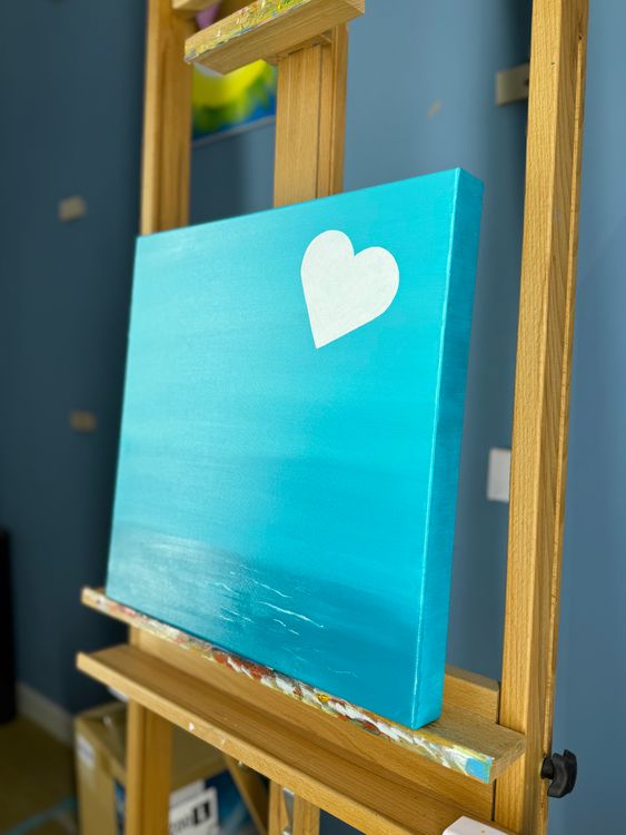 Et blekt hvitt hjerte driver som en fullmåne over et stille, nattlig hav. Månelyset er rolig, åpent og stille. Havet rører seg knapt, forsiktig strøket med fine penseldrag av sølvlys. Det er kaldt, men ikke hardt. Det er fred her — den som senker seg når verden har stilnet. Som det første maleriet i Wintering Down-kolleksjonen setter det tonen: langsommere, mykere, mer innovervendt. Et øyeblikk for å puste, og bare være.